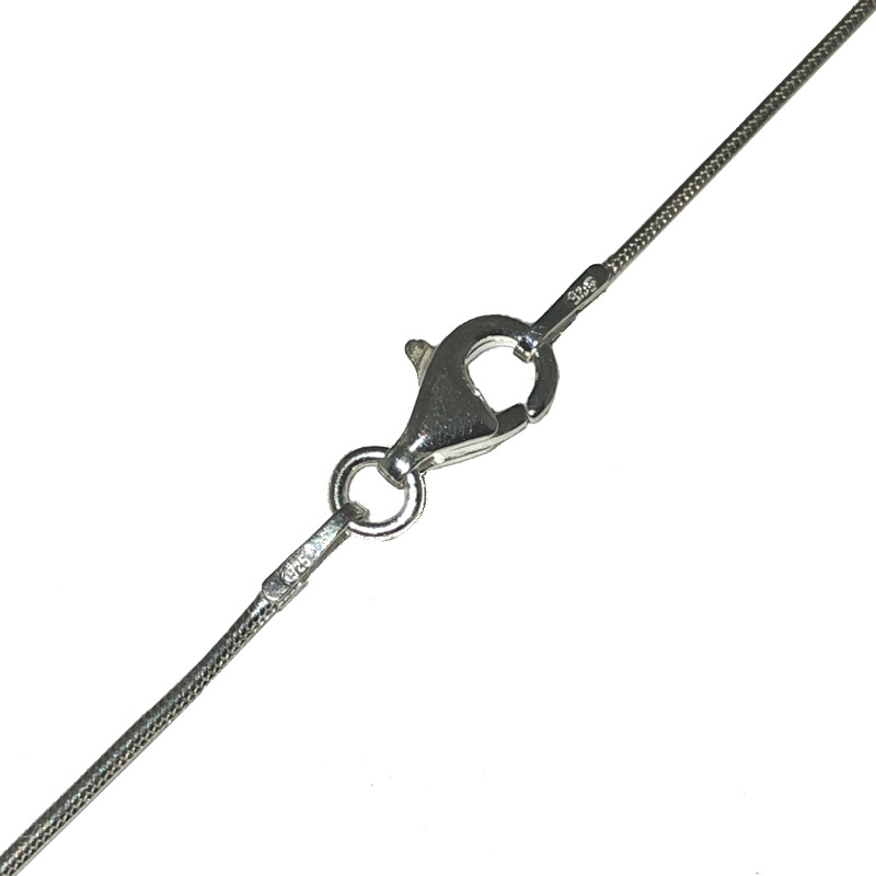 Popular Silver Snake design Neck Chain in 400mm length. Sterling Silver chain perfect to wear as an elegant necklace or use with pendants. Sterling 925 Silver Fine 1mm Chain, 16inch with quality Sterling Silver carabiner clasp.