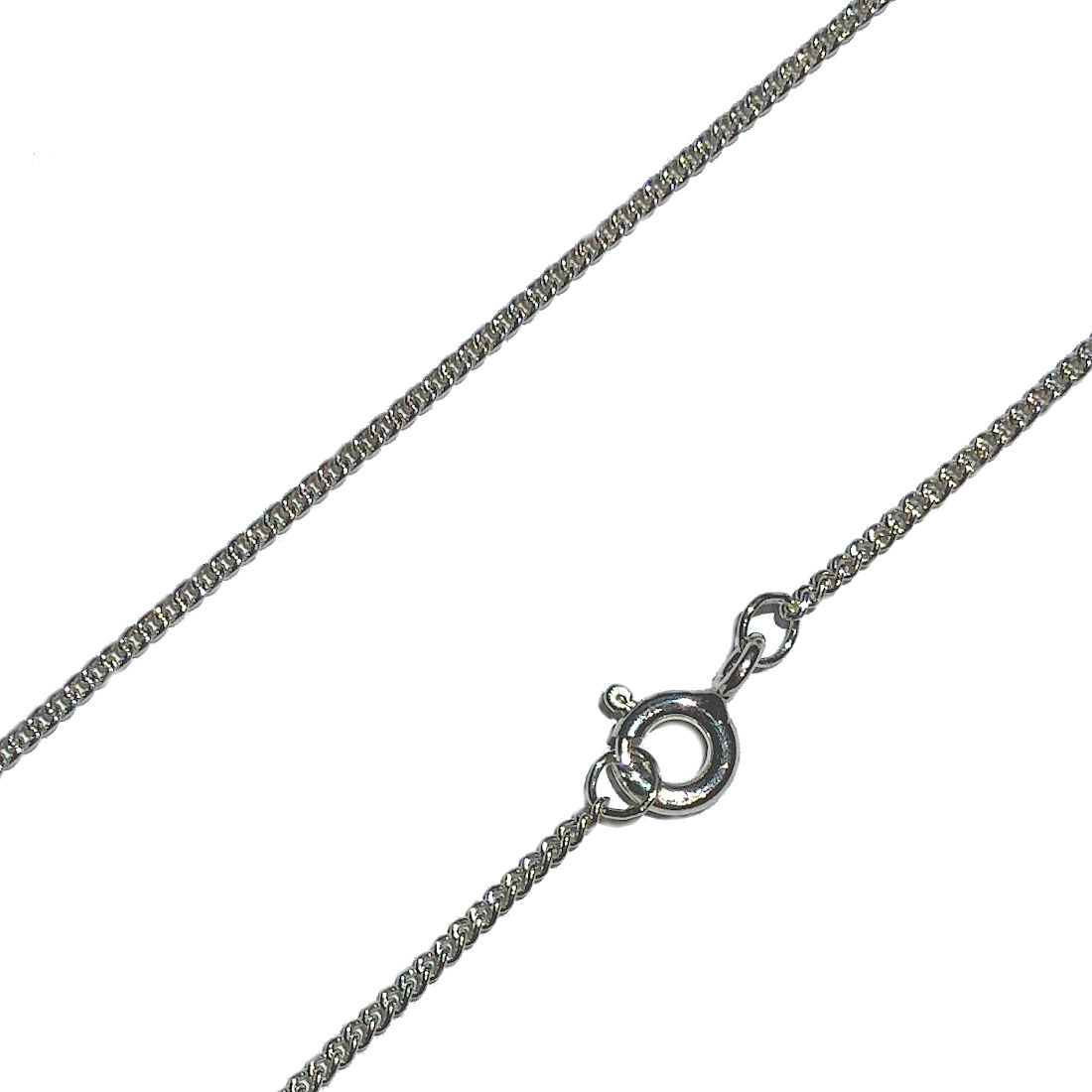 Sterling Silver Trace Close Curb link Neck Chain, 460mm (18inch) length. Popular 18inch length ladies Fine Curb Tight Link Necklace Chain or pendant chain. Close Curb link gauge 1.2mm wide with 5mm bolt ring clasp attached.